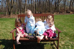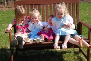 When it comes to portrait photography, I’m a bit of a realist. Pictures should help us remember, not pretend. No pretending here. I think this might qualify for that fail blog website. Oh well, if I looked back 30 years from now and saw 5 perfectly dressed little girls all sitting still in a row I’m pretty sure I’d ask who those kids were. These will definitely jog my memory… Our lovely, crazy, wiggling, swarm of babes.